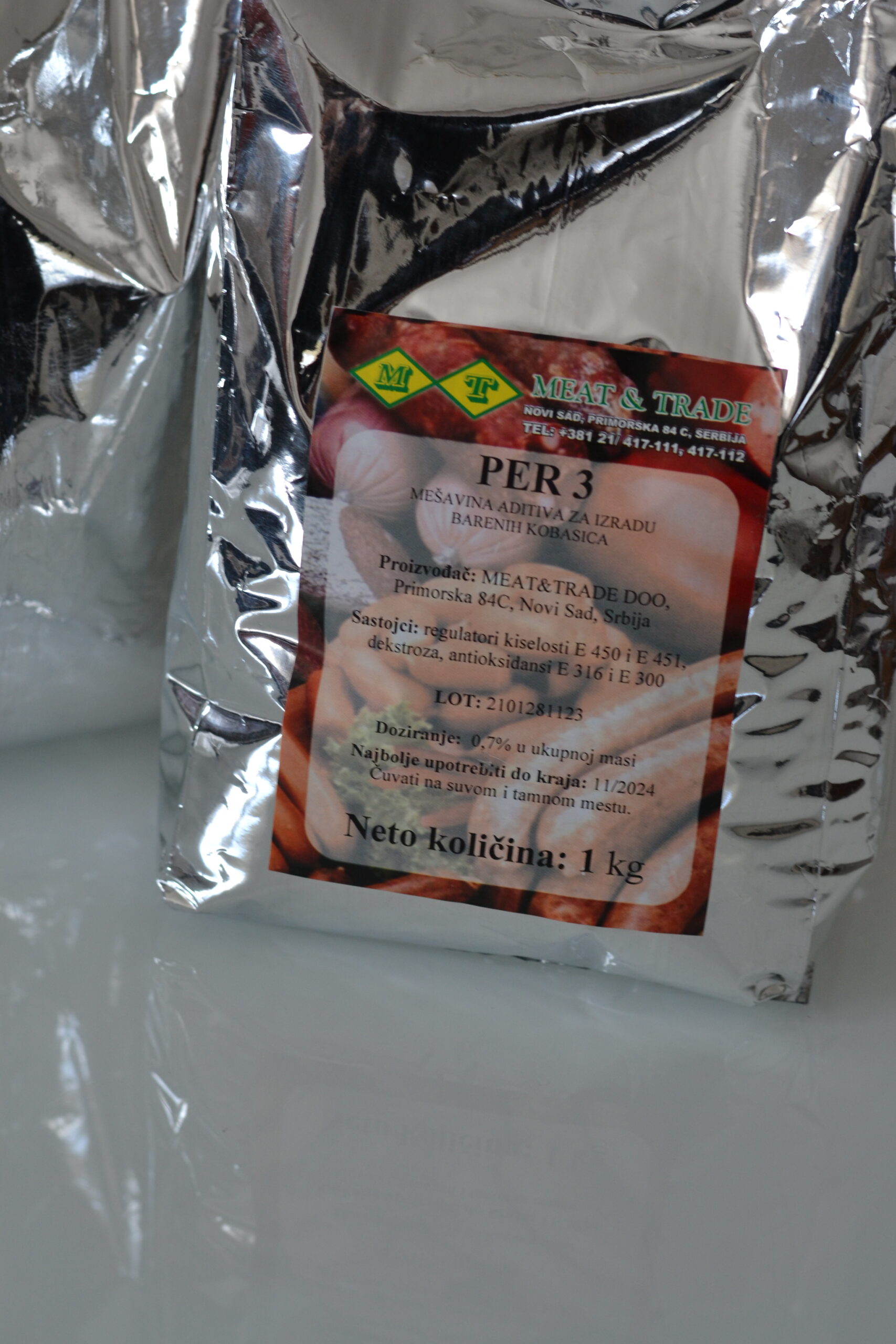 PER 3 100g je aditiv namenjen za upotrebu u mesnoj industriji, u skladu sa preporučenim doziranjem. Koristi se radi unapređenja funkcionalnih svojstava i stabilnosti mesnih proizvoda tokom proizvodnog procesa.